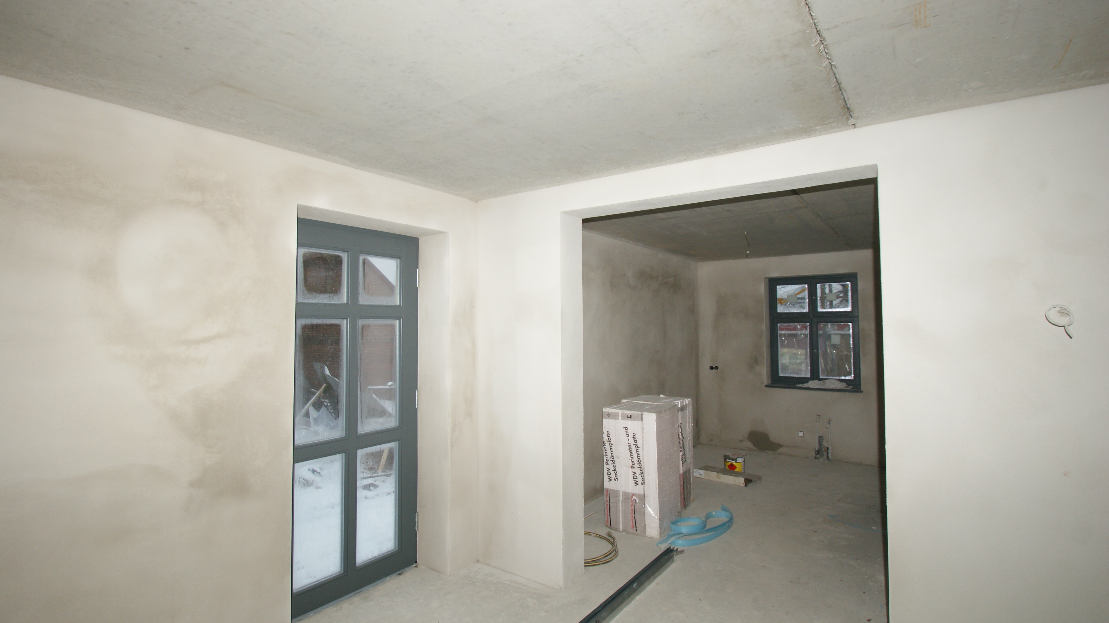 Außenfenster und -türen folgen denkmalpflegerischen Forderungen, es wurden Holzfenster mit Zweischeibenisolierglas und echten Flügelteilungen und Oberlichtern eingebaut.