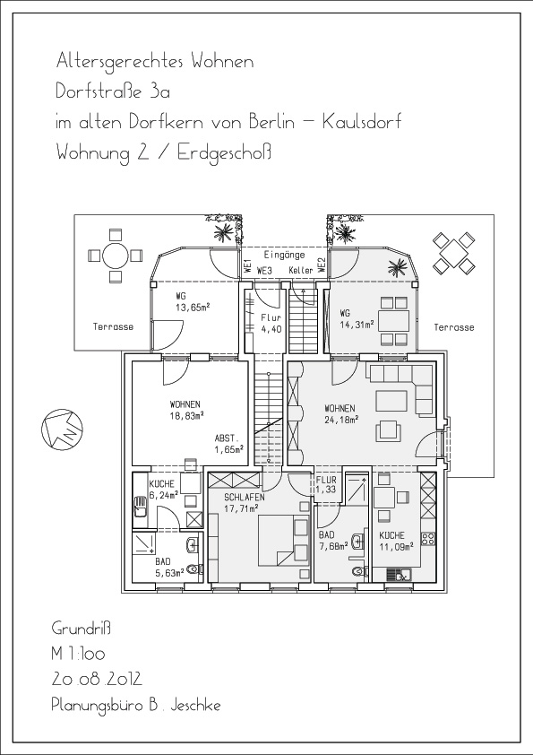 Insgesamt erhielt das Haus 2 Wohnungen im Erdgeschoss und eine Maisonettewohnung im Ober- und Dachgeschoss.